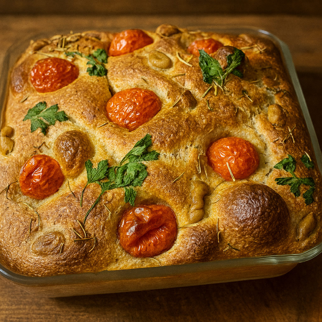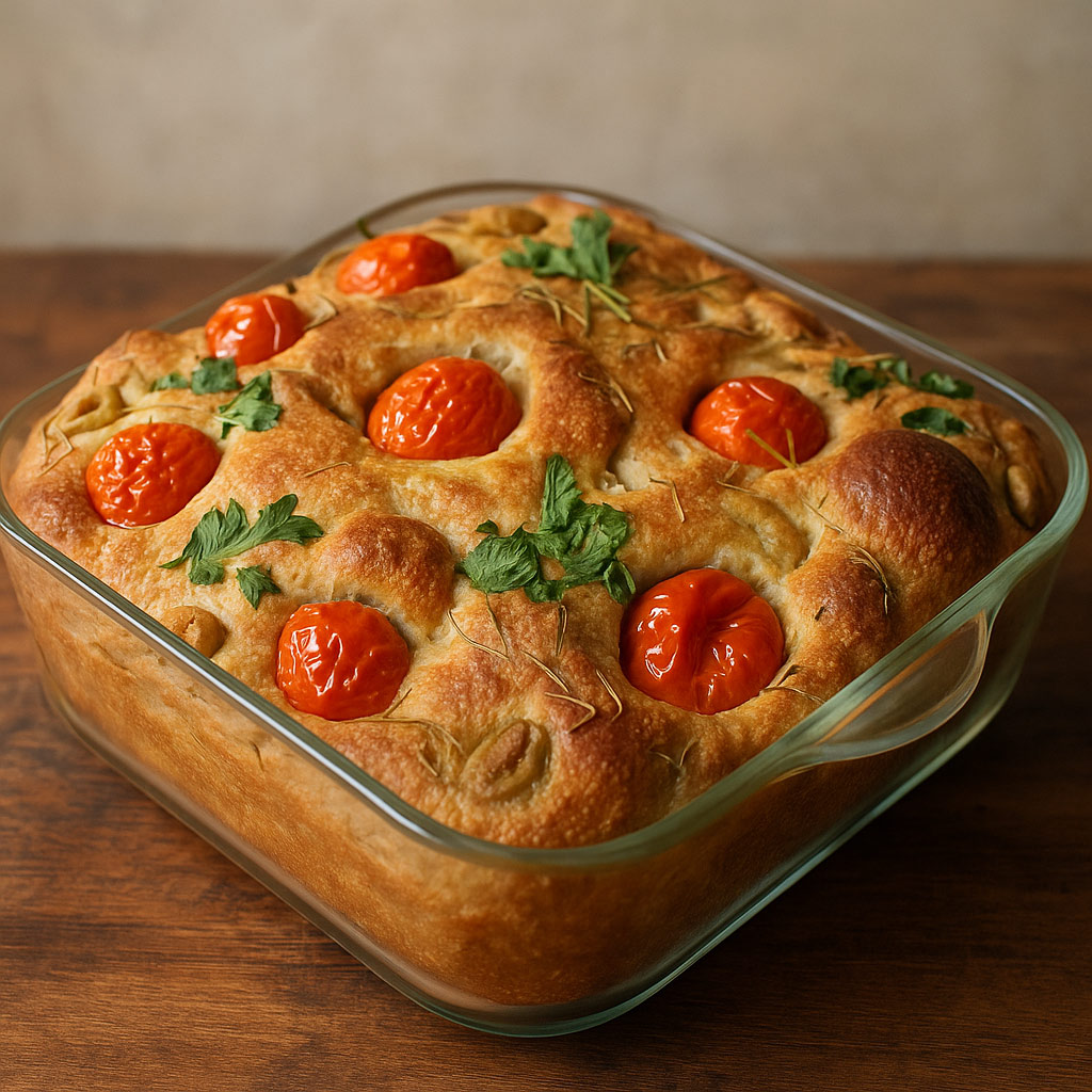 İtalya’nın geleneksel fırınlarından çıkan bu focaccia, üstünde parlayan çeri domatesleri, taze kekik ve zeytinyağının mis kokusuyla sofralara geliyor. DilnazChef, klasik tarife kendi dokunuşunu ekleyerek hazırladı.